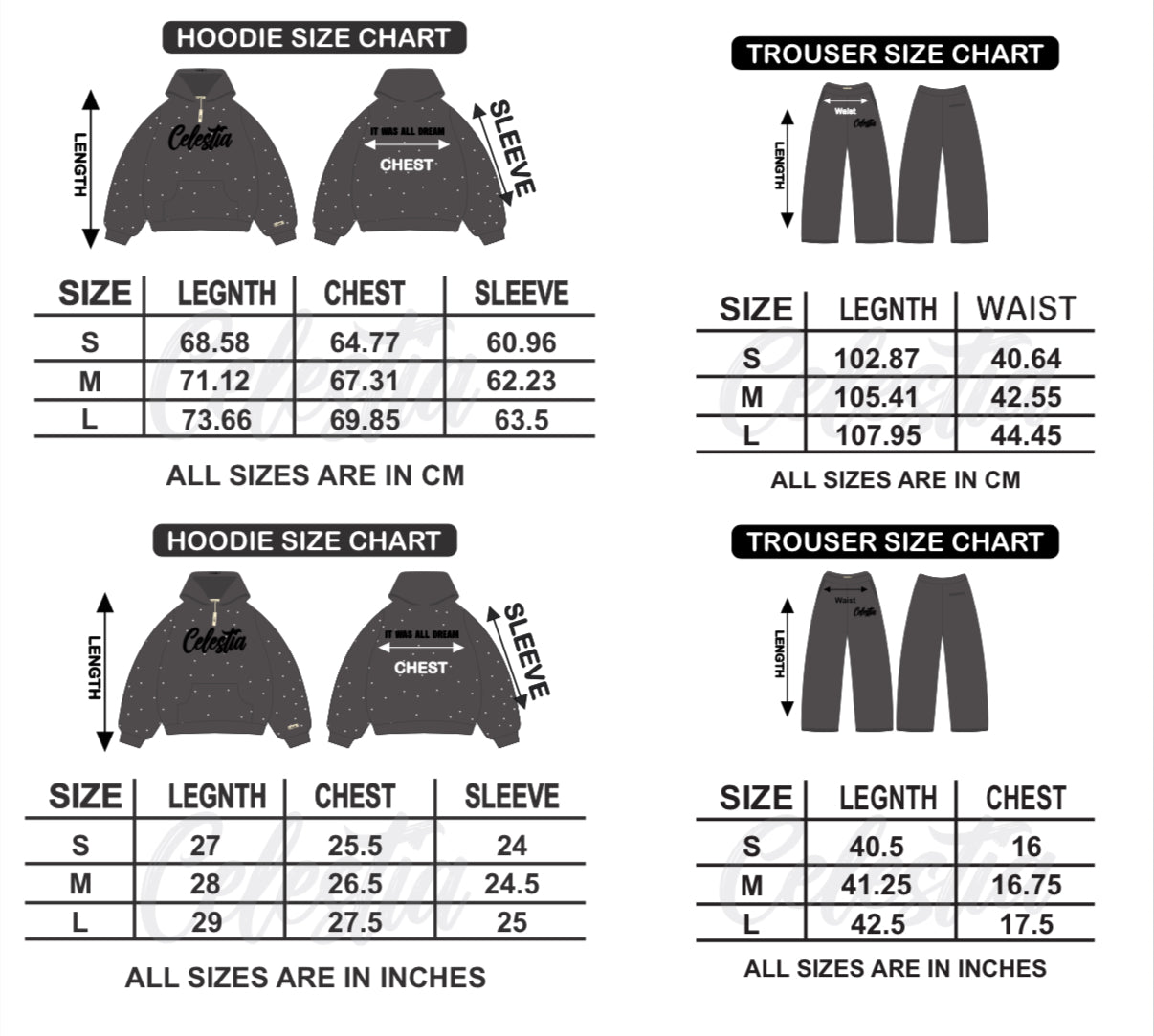 This smoke grey oversized sweatsuit fuses bold puff prints with shimmering rhinestones, creating a look that’s equal parts cozy and cutting-edge. A refined take on street style, made for dreamers who turn vision into reality—effortlessly.
